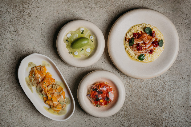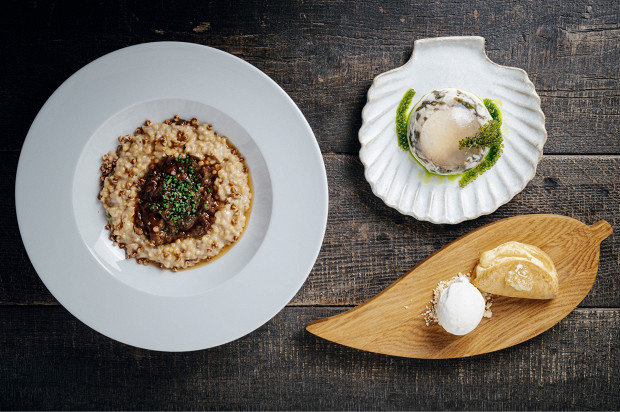 Тыква, нерка, пшено и дыня — из этих простых продуктов собран фестивальный сета шефа Евгения Цыганова. Переплавленные на современный лад продукты дали яркий набор блюд: крудо из тыквы с маринадом из водорослей комбу, айоли на тыквенном масле холодного отжима из собственной маслобойки, чили и кинзой. Нерку приготовили на низкой температуре со сливочным маслом, специями и топлеными сливками. Пшено сложили с омулем слабой соли, сладким соусом унаги и соленой брусникой. Финал — десерт из дыни, маринованной в зеленом масле, с йогуртовым кремом и сорбетом из огурца, кинзы, мяты и базилика.