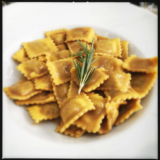 Квадратная или круглая паста с мясной, овощной или сырной начинкой внутри. Подают в бульоне или в соусе. Доподлинно неизвестно, где в Италии начали делать равиоли, к тому же такая технология прослеживается в культурах многих стран мира. У каждого региона Италии в ходу своя форма и свое название (например, аньолотти в Пьемонте). В Эмилии-Романье делают равиоли зуко — с тыквой, печеньем амаретти и пармезаном, получается соленое блюдо со сладким оттенком. В Центральной Италии равиоли делают со шпинатом и рикоттой и подают со сливочным маслом и шалфеем. Самое простое и беспроигрышное сочетание — томатный соус.