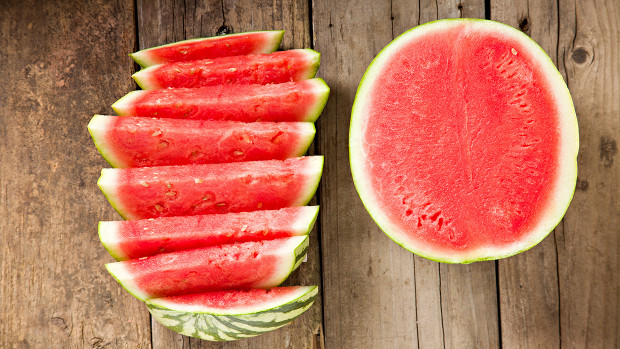 Мякоть арбуза состоит на 90% из воды, таким образом он «увлажняет» нас изнутри, высокое содержание клетчатки помогает бороться с лишним весом, а мочегонный эффект — избежать отеков. Красный цвет мякоти сигнализирует о высоком содержании ликопина, важнейшей составляющей анти-эйдж-терапии. Арбуз — хороший источник фолиевой кислоты и железа, способных подстегнуть метаболизм и укрепить защиту организма против негативных внешних факторов.