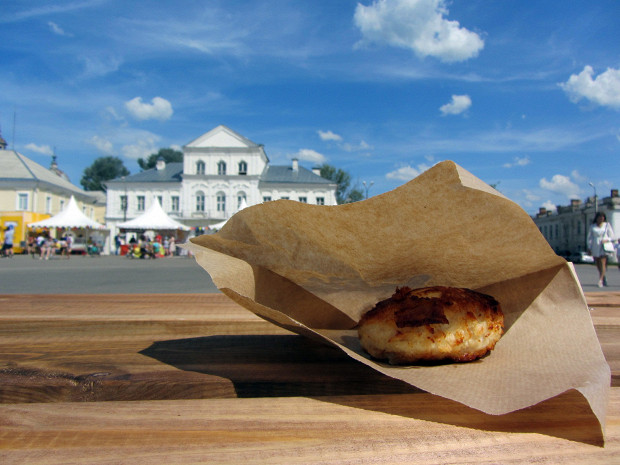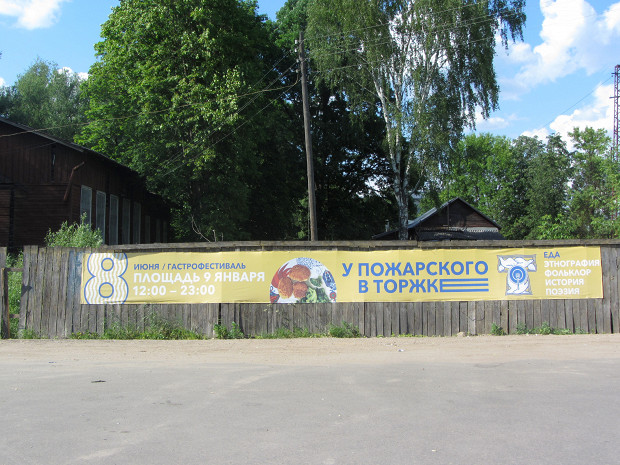 Пожарская котлета была придумана около двухсот лет назад в Торжке — редкой красоты тихом городе на реке Тверце. Нынешний Торжок практически не отличим от Торжка с фотографий Прокудина-Горского: деревянная церковь XVII века, избы, палладианский собор Борисоглебского монастыря, спроектированный Николаем Львовым на крутом берегу, руины путевого дворца Екатерины II, а еще густые набережные, горлицы, шмели и дети, купающиеся в быстрой реке посреди города. Разве что теперь к идиллии добавились изображения толстой пожарской котлеты, встречающиеся то тут, то там.