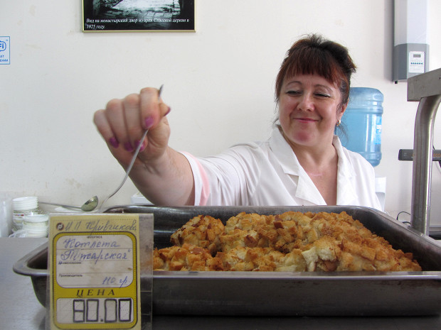 Если в народ она еще не ушла, то это дело времени: оказаться в Торжке и не заметить котлету сложно: ее фотографиями украшены фасады ресторанов, ею заманивают к себе столовые и кулинарии, о котлете обязательно расскажут во Всероссийском историко-этнографическом музее Торжка (главная достопримечательность которого, к слову сказать, не экспонаты, связанные с котлетой, а редкие берестяные грамоты). Теперь котлета — одна из важнейших достопримечательностей города наравне с исторической застройкой, монастырями и томным изгибом реки Тверцы. Только если достопримечательности Торжка можно обойти за один день, то на дегустацию котлет, без потерь для здоровья, придется потратить пару дней, не меньше — готовят их буквально во всех заведениях города, от монастырской трапезной и столовой до пивных и гостиничных ресторанов.