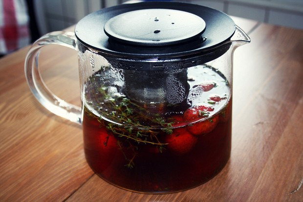 Редкое, но удачное для чая сочетания тимьяна и клубники: ягода смягчает терпкость травы, а трава не дает ягоде превратить чай в компот.