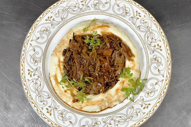 Телячья печень — самая нежная, она лучше всего подходит, чтобы превратиться в суфле. Для этого применяется чисто французская технология: перемолотая печенка смешивается сначала с соусом бешамель, потом перетирается с яичными желтками, а в конце добавляются взбитые в пену белки. В итоге получается нежнейшая консистенция, умеренная маслянистость, воздушность, но главное — почти исчезает горьковатый привкус, присущий печенке, а выразительность и яркий вкус остаются.
