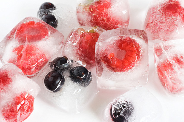 Тут в дело идут пищевые красители, которые мы используем для всевозможных желе. Это, конечно, не так ЗОЖ-ориентировано, как замороженный свежевыжатый сок, зато может быть очень и очень красиво, особенно если вы заранее продумаете цвет льда и цвет коктейля.