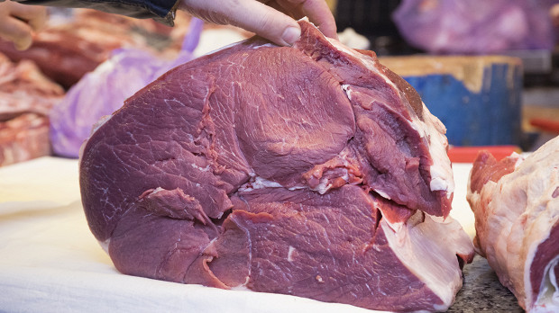 В-третьих, мясо надо трогать. Оно должно быть упругим, не должно быть мягким и водянистым — если так, это говорит о том, что мясо неоднократно подвергали заморозке и разморозке. Волокна не должны разваливаться: если увидите такое, это признак того, что мясо несвежее.