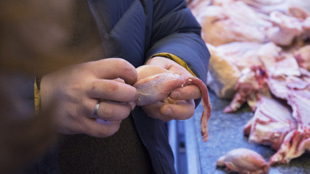 Еще стоит обратить внимание на то, чтобы в мясе не было сгустков крови, гематом или каких-то иных образований, которых в мясе быть не должно. Их наличие говорит о неправильном забое — либо о том, что животное было больным.