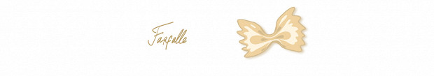 Технологически очень простая паста. Делаете лист теста, режете на прямоугольники, а потом каждый защипываете посередке — получается бабочки, то есть farfalle. Паста известна с 1500-х годов, фабрики скопировали давно известную форму. Родом из Ломбардии и севера Эмилии-Романьи. Готовят фарфалле с легкими соусами: томатным и овощным.