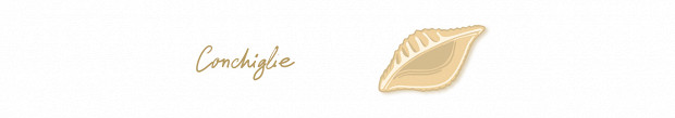 Относительно современный вид пасты — сделать такие рифленые закрученные ракушки вручную, без помощи специальных машин, практически невозможно. Соус оказывается и снаружи (в тарелке и в желобках рифленой поверхности), и внутри ракушек — больше соуса не впитывает ни один вид пасты! Идеальна с легкими, но вязкими и неоднородными соусами — арраббьятой и другими томатными особенно, — а также в запеканках.