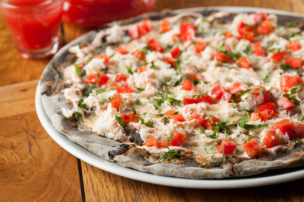 Пицца с крабом, сливочным соусом карри и икрой летучей рыбы