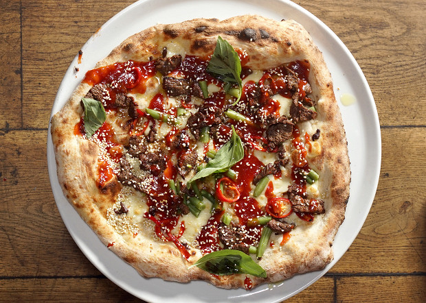 «Пару лет назад я смотрел по телевизору соревнования по приготовлению пиццы в Неаполе. И там то ли китайцы, то ли японцы получили первое место — сделали пиццу с угрем, кимчи и огурцом. Мне тогда очень понравилось соотношение кимчи с рыбой, и я подумал, что с мясом будет не хуже. Решил попробовать сделать нечто подобное — и придумал пиццу с начинкой из кенийской фасоли, мраморной говядины, соуса кимчи и обжаренного белого кунжута. Вкуса фасоли в пицце вы, скорее всего, не почувствуете, но она тут очень нужна: не дает перцу одержать верх над мясом. А кунжут нужен для ярко выраженного привкуса хлеба. Когда его хорошо обжаришь, у него появляется запах, еще сильнее возбуждающий аппетит. Гостю приносят эту пиццу — и он первым делом он получает удар в нос от жареного кунжута. Говядину мы маринуем так: берем соевый соус, соус кимчи, перец чили, чуть-чуть красного вина и держим в этом мясо несколько часов».