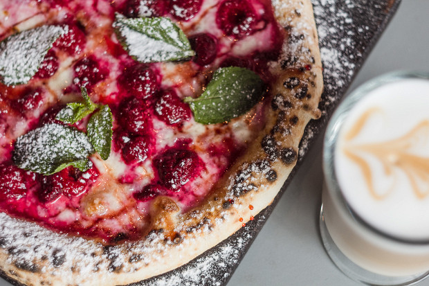 Пицца с малиной, маскарпоне и соусом «Порто»