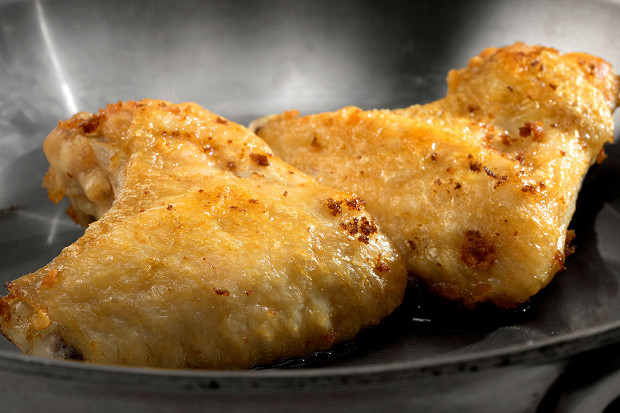 «Крылья — благодатный продукт, их можно много с чем сочетать. Например, с медом и специями. Приготовьте сахарно-солевой раствор: литр воды, 100 грамм сахара и 50 грамм соли. Хорошо размешайте, погрузите в этот раствор крылья на 4 часа. Затем высушите, обжарьте на сливочном масле до появления красивой корочки, после чего отправьте их на 7 минут в хорошо разогретую духовку. Потом достаньте крылья из духовки, смажьте медом и соевым соусом и снова отправьте запекаться, пока у крыльев не появится корочка еще краше. В этом способе важно не игнорировать рассол: соль вытаскивает лишнюю влагу из крыльев, и поэтому кожа окажется хрустящей, а крылья внутри будут очень нежными.