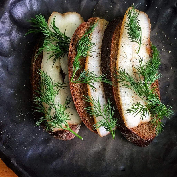 Я делаю рассол с лавровым листом, душистым перцем и укропом: все это закидываю в горячую воду, остужаю и заливаю этим уложенное слоями в кастрюлю сало. Его я предварительно режу на куски длиной и шириной по 10–15 см. Рассола я делаю столько, чтобы он покрыл сало целиком, и солю сало в течение трех-пяти дней в холодильнике. Чем дольше его держишь, тем оно солонее — но оно точно не пересолится от пропорции в 60 г соли на литр воды. Готовое сало можно дополнительно натереть любыми специями, какие вам нравятся».
