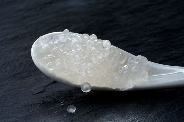 Но повара любят тапиоку не за это. Крахмал тапиоки используют либо в чистом виде как муку и загуститель, либо делают из него похожие на жемчужины шарики разного размера. Вот в этих-то шариках — весь цимес. Изначально безвкусные и пустые, они запросто принимают в себя любой вкус — хоть ананаса, хоть креветок, хоть кокосового молока. Надо лишь проварить тапиоку в соответствующей жидкости.