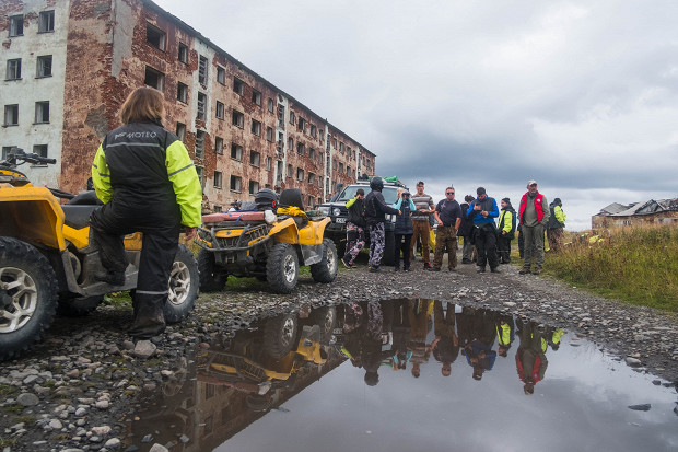 Стартуем по уже знакомому маршруту — поднимаемся по берегу залива на сопки Среднего. Мы с Андреем Шмаковым замыкаем колонну из квадроциклов: хорошо водишь — следи за другими. Шмаков, кажется, не очень радуется заданию следить за отстающими, но подчиняется. На четвертый день здесь вообще все самонастраивается, словно это место заставляет нас проявлять качества, спящие в привычной городской среде.