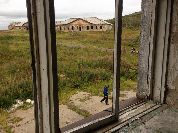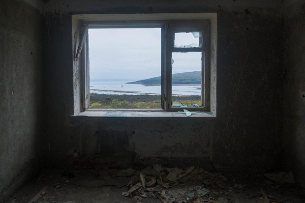 Перед домом остатки асфальта, кажется, единственного на полуострове. Я захожу в дом — хочу найти комнату с видом на море. Каково это — жить и наблюдать такую безмолвную красоту каждое утро, просто заваривая чай на кухне? Правда, говорят, жизнь здесь была суровая, нередко ветра вышибали стекла в квартирах. Сейчас внутри пусто. Даже обрывков газет, молчаливых свидетелей времени, практически нет. Ни игрушки, ни ржавого остова плиты.