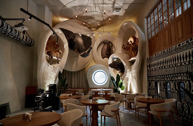 Или, кажется, вовсе не имеющий аналогов в мире ресторан-путешествие «Ливингстон», где, переходя из зала в зал, гости знакомятся с экспонатами из коллекции бизнесмена-путешественника Александра Розенцвайга. Ритуальные маски, предметы быта и религиозных культов племени масаи, полсотни чучел охотничьих трофеев открывают портал в захватывающий мир африканского сафари. Экспозиция настолько здорово сделана, что чувствуешь себя в залах Музея Естественной истории Нью-Йорка: в ресторане есть штатный экскурсовод, а по QR-кодам можно самостоятельно получить информацию и посмотреть видео о заинтересовавших экспонатах. В меню - крепкий замес африканских специалитетов с кухнями всего Ближнего Востока, от Израиля до Туниса и Ливана: названия экзотических блюд, дразнящие ароматы и вкусы создают дополненную реальность путешествия длиною в обед.