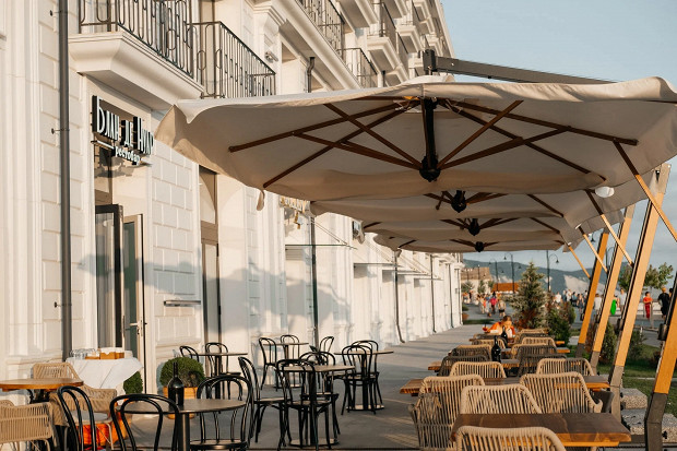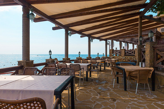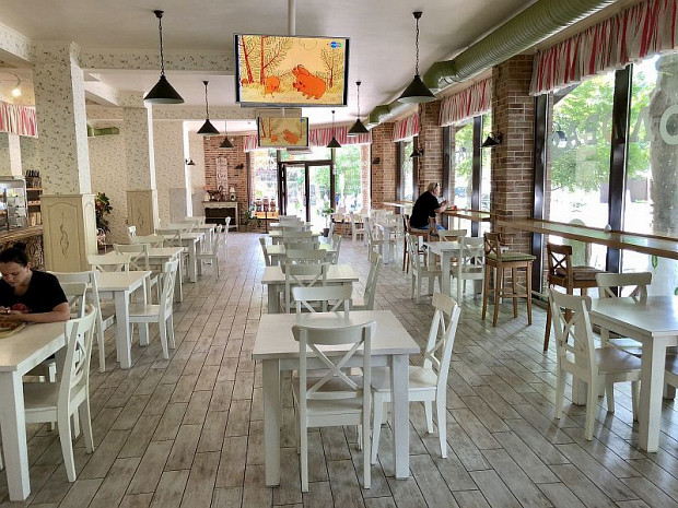 Те, кто не первый раз отдыхают в городе, приходят сюда по старой памяти, а новички заглядывают по рекомендации. Большое здание окружает летник, который впору называть парком, настолько велика его территория. В зелени растений утопают уютные столики на небольшие компании и прячется площадка для мероприятий и семейных застолий. Меню «классическое курортное»: с блюдами на мангале, для детей, европейской, русской классикой и авторскими салатами для искателей новых вкусов. Средний чек 1700 рублей с персоны, что для побережья весьма гуманно.