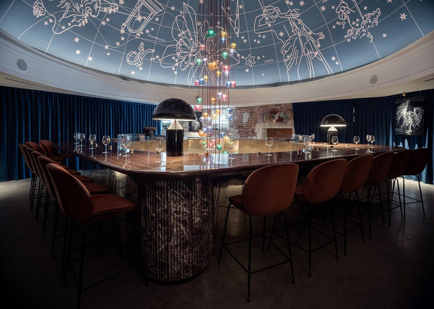 Пожалуй, самый красивый винный бар Урала с органическими винами в восстановленном павильоне XIX века в историческом ансамбле «Синара-Центра». В центре интерьера — девятиметровый купол в виде звездного атласа с мифическими созвездиями и алхимическими символами. Все делают фото с бокалом на его фоне.