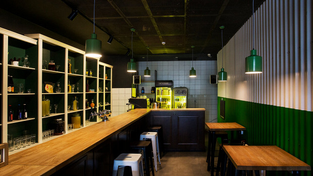 Музыкальный бар или народная крошка-рюмочная с неоновым названием на стене. Выпивают здесь преимущественно наливки (они здесь с изюминкой: малиновая с сакурой, черносмородиновая с фиалкой, сливочная клубника), настойки, которые меняются раз в сезон и, конечно, коктейли (есть даже в бутылочках с собой). Если вы больше любите пиво, что-нибудь интересное всегда можно найти в пивном холодильнике. Меню небольшое: пиццетты, пельмени и легкие закуски к рюмочкам типа сыров и оливок. Народу здесь бывает много, особенно вечером в пятницу или субботу. Для внимательных: на панно плиткой выложена фотография 1981 года перекрестка Первомайская-Луначарского с городком чекистов и трамвайной линией (бар находится по соседству).