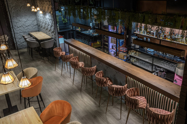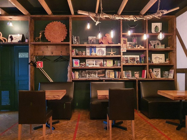 Помещение небольшое, уютное, с камином и видом на заснеженные местные холмы. Несколько раз в сезон проходят тематические гастроужины, а за сутки до визита можно заказать и попробовать сет «Душа Колымы» — семь блюд с рыбными и мясными деликатесами региона. Блюда из основного меню отличаются красивой подачей, и вы вряд ли встретите что-то подобное в другом заведении города. Советую попробовать командорского кальмара с гребешком и ризотто из черного риса, колымскую окрошку на квасе с крабом. А на закуску — мусс-паштет из охотской нерки. Из напитков есть интересная версия коктейля шприц с добавлением стланика (это местный кустарник семейства сосновых) и украшением из сусального золота.