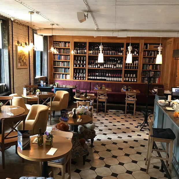 Кофе. Еда. Вино. Книги. В этом душевном ресторане можно заказать бокал интересного вина (а здесь их около 300 бутылок: как для каждого дня, так и уникальных вин для особых случаев). В ожидании блюд можно полистать книги, которых в ресторане более 2000 штук. Самая старая из них —1877 года. Есть издания и 1906-го, и 1939-го, а за интересный томик в дар «Библиотеке» вас могут угостить кофе.