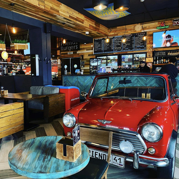 «Мясобургерная для друзей», которая сама себя называет лучшей на Камчатке. Многие согласны и советуют для нетуристического времяпрепровождения именно эту демократичную фаст-кежуал-бургерную с правильной атмосферой, хорошими котлетами и ребрами с гриля, булками собственного производства и домашними напитками. Помимо классики жанра, в заведении есть и меню из локальных продуктов, где прописаны: бургеры «Дичь» с олениной, папоротником и брусничным соусом, «Держи краба» с мясом камчатского краба, «Путина» с котлетой из чавычи и красной икрой. Отдельный номер программы — «Завтрак камчадала» из скрэмбла с крабом, бутером с подкопченной неркой или с лососевой икрой.