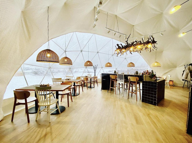 Под белоснежным куполом, напоминающим то ли вигвам, то ли чум в дизайнерском исполнении подают авторскую версию северной кухни. Подачи сдержанны по-скандинавски: превосходно готовят оленину с кремом из печеной моркови, можжевельником и брусничным соусом BBQ, подают палтуса на гриле с печеным на углях картофелем, а горячий взвар из облепихи с невероятным ароматом дымящейся веточки розмарина, выложенный на блюдце, и коктейли, декорированные живыми цветами, заслуживают отдельных комплементов.