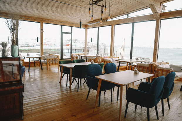 Интерьер ресторана сдержанный, легкий, воздушный и при этом уютный: панорамные окна дают неограниченный доступ к созерцанию окрестных пейзажей. А в меню — блюда, которые можно и нужно попробовать в Териберке: строганина из дикой семги Белого моря, териберский гребешок, камчатский краб, поморская уха.