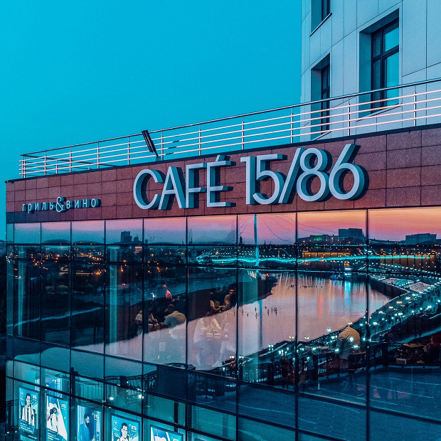 Есть непреложные законы. Например, раз в стране бродят какие-то денежные знаки, то должны же быть люди, у которых их много. Или, раз в городе есть река, то должен быть видовой ресторан. За панорамными окнами Café 15/86 река Тура как на ладони. А еще вантовый мост, который совершенно официально именуется Мостом Влюбленных. Сам ресторан одновременно и гламурный, и огромный. В таких случаях неизбежно хочется добавить: как стадион. Меню целых два, и они абсолютно равнозначны. Тем, кому не нужна экзотика, предлагается итало-средиземноморская еда с вкраплениями из борща, бефстроганова и том-яма. Для всех остальных имеется меню сибирское. Даже пельмени здесь готовят с зайцем, щавелевый суп варят с олениной, а птитим выступает гарниром к томленой голяшке лося. Цены уверенно премиальные, но есть возможность сильно сэкономить, если прийти на бизнес-ланч. Ведь пейзаж от суммы чека никак не зависит!