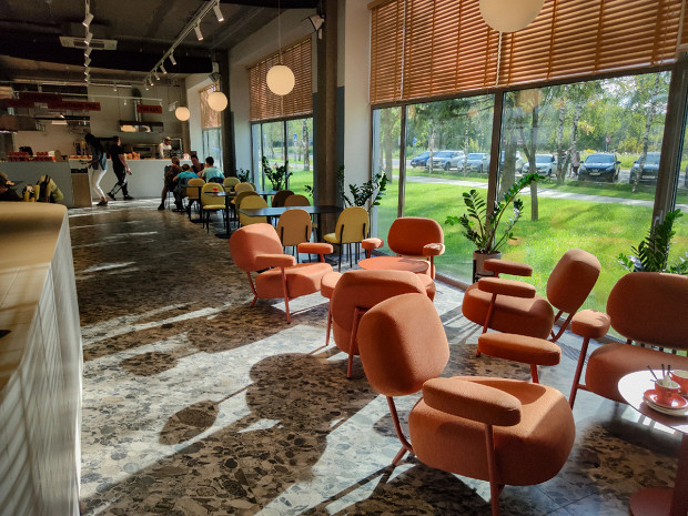 Пожалуй, главное ресторанное открытие в Угличе этого года, которое, выражаясь языком гастрономических справочников, стоит отдельного визита, поскольку находится несколько на отшибе, на территории возрожденного угличского сырного завода, действующего предприятия и одновременно музея. Хотя отшиб — минут пятнадцать на машине от исторического центра. Место для посещения обязательно, особенно с детьми, — о музее поговорим отдельно ниже, а вот ресторан смотрится так, как обычно выглядят едальни при музеях где-нибудь во Франции: это прекрасная современная архитектура и хорошая еда, разумеется с сырным акцентом. Днем кормят в формате фри-фло, и на поднос можно набрать образцовый сырный суп с интересными топингами, щучьи котлеты, салат с брынзой во фритюре, гигантский кусок «Наполеона», компот, и выйдет все рублей на шестьсот. Вечером в ресторан переходит на меню а-ля карт, с коктейлями за стойкой, диджеями и блюдами от московского шефа Григория Мосина: на почетных местах кордон блю, запеченный волжский судак, печень по-строгановски и фондю из угличского сыра.
