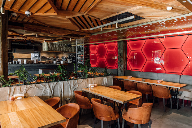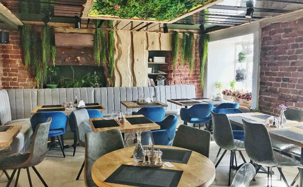 Уютный ресторан с оранжереей, которая выглядит как сад Мальвины, с бокалами голубого цвета и цветными диванами. Не мудрено, что такую локацию облюбовали местные стилисты и блогеры, есть даже правило: «Хочешь фотосессию с профессиональным фотоаппаратом — купи бутылку шампанского». В названии нет ошибки, владельцы свои проекты считают бусторанами, от первого слога фамилии Буянковы, и, описывая концепцию, говорят: «Буратино — полено-парень, а у нас кухня построена на смокере, который работает на дровах». На дровах делаются и брискет, и ребрышки из раздела BBQ, и римская пицца — вот оно оправдание подстрочника — «Корочки и косточки». До 16.00 здесь завтраки с игристым, в меню: черничная овсяная каша со страчателлой и сезонными ягодами (235 р.), печеный картофель с томленой говядиной и яйцом пашот (270 р.), тосты с креветками, шпинатом и яйцом пашот (295 р.), круассаны и завтрак от шефа за 479 рублей, включающий скрэмбл, салат из печеной свеклы с сыром страчателла, паштет из печени цыпленка, мусс из копченой семги с гриссини и чиабаттой. Для любителей не только есть и пить, но и петь сделали темную с низкими потолками каморку-караоке.
