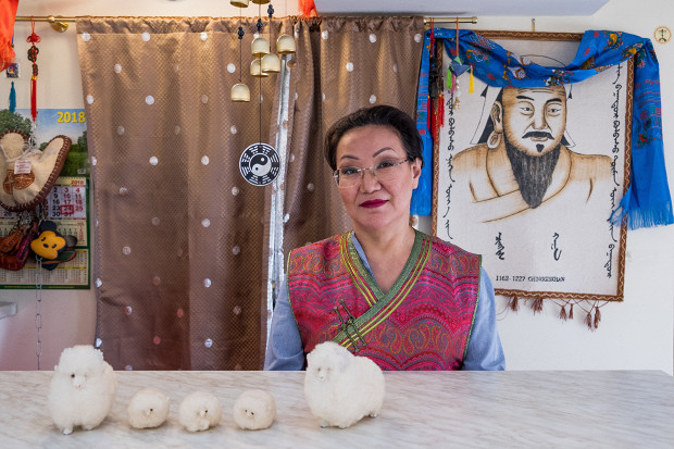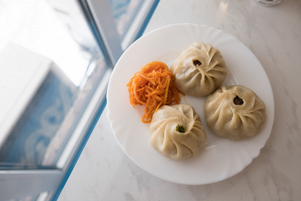 «Раньше здесь рюмочная была, — говорит Сирафима. — Мы все переделали, раньше тут было совсем темно, стало светло. К нам первое время ходили алкаши, но перестали: они же света боятся, в дверях застревают. Буузы мы, кстати, всегда позами называли. Это совсем недавно запретили в Бурятии «позы» писать: какой-то депутат приехал и подумал, что попал в столицу интим-услуг». Кроме буузов (обычных, с говядиной и свининой, пропущенных через мясорубку, и ханских, с рубленой говядиной,) в «Байкале» готовят суп бухлёр, баранью печень в рубашке (то есть в жировой сетке), мясные груши хушуур, жареные лепешки шарбин с мясом и с моцареллой и чесноком, удивительный салат с жареными огурцами и говядиной — и еще десятка два блюд. «У нас в Бурятии, — объясняет Сирафима, — в буузных в меню четыре пункта всего и очереди, а здесь люди постоянно требуют чего-то нового. Вот и приходится».