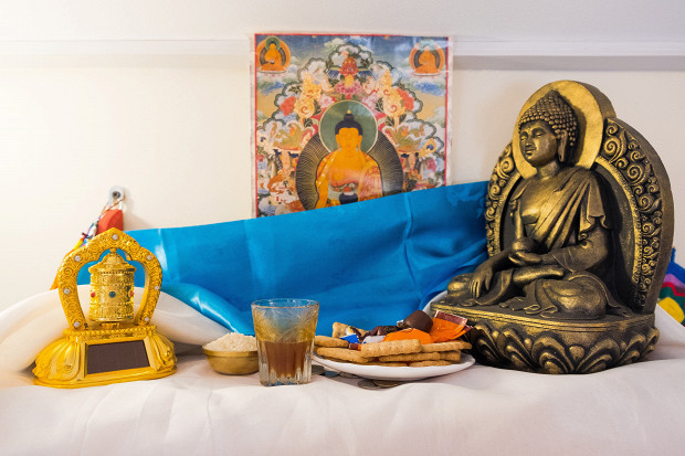 В «Байкале» оказалось очень светло и нарядно от разноцветных ленточек, буддийского алтаря, бурятских узоров. И очень вкусно — я съел буузы и запил их монгольским чаем, соленым и с молоком.