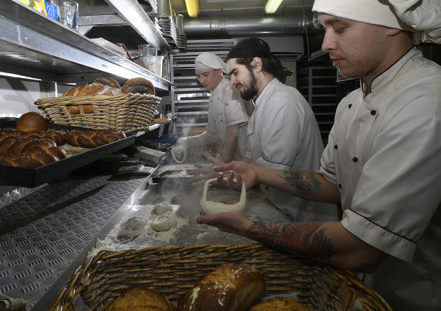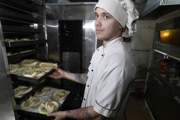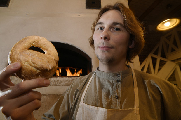 «Шесть месяцев работы над рецептом, и спросить некого — последние калачи в Коломне выпекали перед войной. Произошел культурный разрыв, и никто не знает, как его делать. Ушло из рук, а значит — ушло из жизни. Мы с калачом долго притирались друг к другу: мука крупчатка, которой нигде нет, березовые дрова — непременно без коры, иначе калач будет серый после выпекания, ледяной стол для формовки с ящиком, куда засыпают лед. Формовка в виде замочка — отдельная история: кривенькие, косенькие, раскатать губу, закатать губу, припылить руки, словно штангист перед взятием веса.