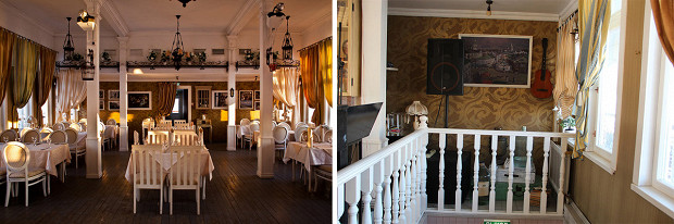 Ресторан традиционной русской кухни на дебаркадере, который снимался в свое время в «Жестоком романсе». Интерьер — купеческая красота с занавесками на окнах, кустодиевскими репродукциями, старинными фотографиями Костромы. Из окон отличный вид на Волгу, заречную часть города и набережные. В меню — ассорти костромских сыров, сладкая квашеная капуста по вохомским (из Вохмы то есть) рецептам, соленые грузди и огурцы, зеленые щи, уха с водкой, зайцы с лосями, медвежатина с кабанятиной, щучьи котлеты и жареные караси.