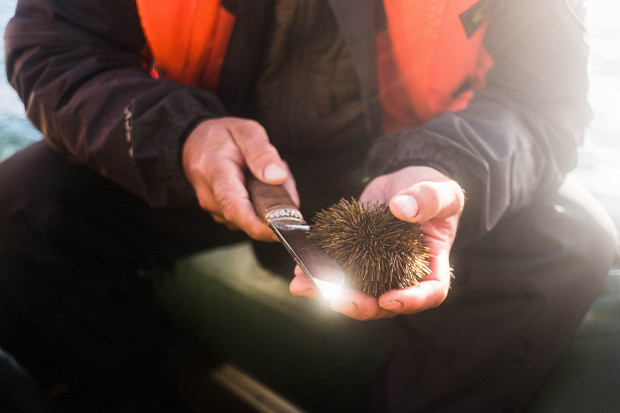 Горячее сбавляет градус претенциозности. Гришечкин приготовил пасту с грибами, которую мы вымаливали у каждого шефа на протяжении предыдущих дней. Он ставит на стол здоровую кастрюлю, с половником, как мы привыкли. Но затем десерт, нет, не так — ДЕСЕРТ! Я уже забыла, что бывают десерты, когда у тебя на первое рыба, на второе рыба и к коктейлю после еды тоже рыба. Панна-котта из простокваши с киселем из брусники (которую, как и щавель, Игорь собрал сам) и водкой прекрасна. На столе появляется ваза с коктейлем от Бганцова, мы млеем, плывем от вкуса, тепла и градуса. Ближе к полуночи все вспоминают про ежей — их же была целая сетка. Через пять минут ежи на столе, мы пытаемся вскрыть их тупыми столовыми ножами, смеемся, смахиваем иглы со щек, наконец кто-то приносит хорошее острое лезвие. Первый вскрытый еж — пять айфонов склонились над икрой. Второй, третий — это лучший дижестив в моей жизни.