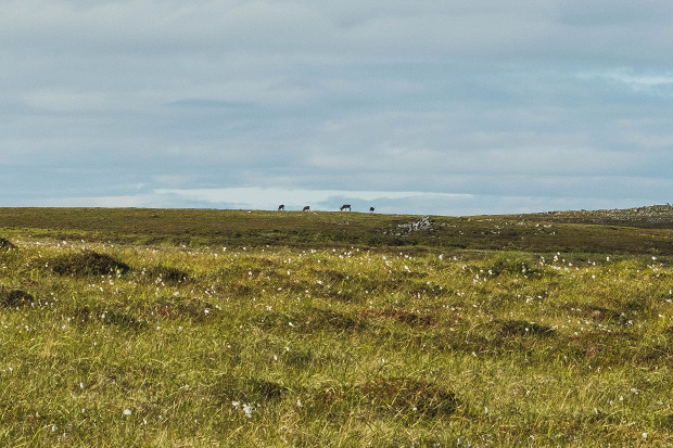 Следующие пару часов проводим в приятной монотонности. Однообразен пейзаж: зелено-желтая тундра с белесыми проталинами ягеля, то синие, то жемчужно-серые озера, меняющие свой цвет в зависимости от того, накрыло солнце облаком или нет. Хлюпающие болота, поросшие травой, — кажется, это самое высокое, что я видела за последние несколько дней. Белоснежные хлопья пушицы — самые контрастные пятна в этой картине. Кажется, небесный художник взмахнул кистью, и белые капли дождем пролились на берега.