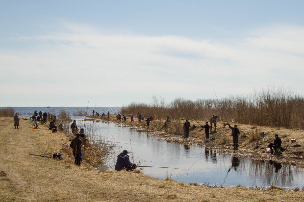 Словно издеваясь над политическими играми, зимой рыба собирается четко на границе — в 12 км от эстонского побережья. Рыбачить ездят на «Буранах». Границу обозначают маленькими свежесрубленными елочками: их ставят на лед через каждые 100–200 м — чтобы рыбаки не забрели ненароком на соседнюю территорию. Впрочем, пограничники здесь лояльные, понимают, что в ином сугробе елочку можно и не заметить, поэтому нарушители отделываются только штрафом.