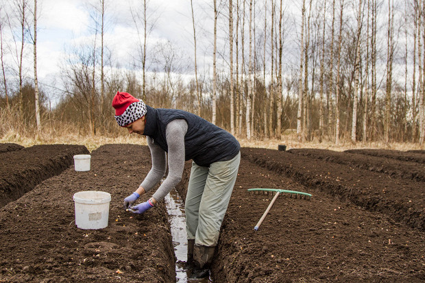 А работа очень тяжелая. Грядки копают вручную — не существует трактора, способного прокопать гряды высотой до 70 см. Грядки высокие — чтобы к солнцу ближе и чтобы озеро не затопило. Земля влажная, ее даже поливать практически не надо. Удобряют только навозом и озерным илом. Первыми высаживают луковицы на зеленый лук — они большие и не боятся холодов. В конце апреля — начале мая сажают севок — мелкий лук, оставшийся с предыдущего урожая. Зеленый лук получается сладким, а репчатый — ядреным и сочным и волокнистым; при термической обработке он не разваливается, а сохраняет хруст, и поэтому так хорош для пирожков и джемов.