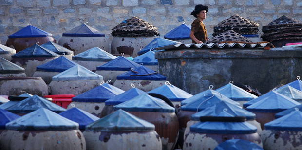Их перемешают с морской солью в пропорции семь к трем и разложат по огромным деревянным бочкам вроде банных шаек циклопов. Сверху снова присыплют солью. Дальше — бамбуковая крышка и каменный гнет — все предельно знакомо по приготовлению квашеной капусты. В собственном соку анчоусу не страшен тлен (а в бочку вся мелюзга попадает еще живой), соль и молочная кислота — та же парочка, что квасит капусту и огурцы, — в отсутствие кислорода творят свое верное дело: выбрасывая в воздух все лишнее, делают рыбкин рассол волшебным.
