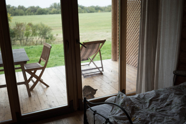 «Мне как-то друг сказал: ой, сколько тебе еще денег надо вложить, штукатурить, обои клеить», — начал рассказывать Алексей за ужином. Стены в «Бальмонте» — массивные, грубые белые камни, потолок — деревянные балки, в углу камин из белоснежного камня, полукруглые окна без портьер, если вглядеться в одно из них, можно увидеть белоснежный же храм Михаила Архангела, тоже восстановленный Алексеем.