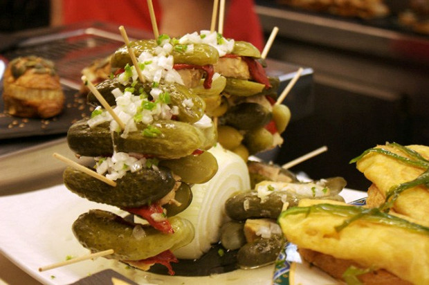 То, что в остальной Испании обычно называют тапас, в северных ее провинциях — и особенно в Стране Басков — именуют пинчос. Разница между двумя этими типами закусок уже еле уловима. По идее, пинчос — это соединение нескольких небольшого размера ингредиентов (среди которых почти обязателен хлеб) посредством палочки, пинчо. Но сейчас и палочка необязательна, и пинчос может быть вполне себе основательным, точно не на пару укусов, блюдом. Правила с пинчос такие же, как и с тапас: выпил стаканчик, съел пару пинчос в одном месте и пошел дальше.