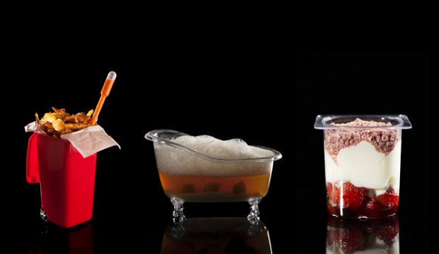 Бар (31 de Agosto, 31) с остроумными пинчос, которые выглядят как гибрид современного искусства и японских украшений. Оливки, где вермут вместо косточки, подают в упаковке от перепелиных яиц, чипсы — в мусорном ведерке или в виде холста на мольберте, к которому прилагаются кисточка и палитра с разноцветными соусами. На десерт — шоколадная голова зомби с мозгами из йогурта.5.