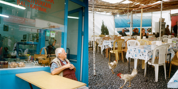 И мы, конечно же, отправляемся (на следующий день? через день? предыдущие дни переплетаются с последующими, и когда был какой, уже непонятно) в Бешикташ (после того как побывали в Бейкозе, дальнем районе на Босфоре, где сам Босфор — шириной со среднерусскую реку, а на берегу под чинарами — столики перетекающих друг в друга кафе, где все едят исключительно йогурт — с сахарной пудрой, с медом, с вареньем) — и в Бешикташе видим, конечно, каймачную со стариком, которому если еще не исполнилось сто лет, то скоро исполнится.