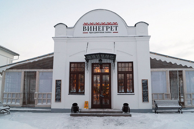«Пушкарская слобода» — крупный туристический комплекс в заречной части города, но в непосредственной близости от Кремля. Поскольку людей приезжает много, ресторанов здесь несколько, все они неплохие и всеми ими героически рулит шеф Максим Рыбаков, знающий и вкусы гостей, и современные гастрономические тенденции. Главное заведение — «Улей» с народной, как говорит Максим, русской кухней. Еще есть «Пушкарь» с более основательным русским меню, и «На Пинаихе», где к борщам и ухе присоединяются семга в устричном соусе и куриное филе по-тайски, а фирменный салат (язык, курица, шампиньоны, лук, кедровые орешки, корнишоны и майонез) называется «Олигарх». А в кафе-лавке «Винегрет» Максим более свободен в своих экспериментах: там совсем короткое меню, которое меняется по сезону и куда допускаются самые разные блюда — и азиатская лапша, и копченое мороженое, и сэндвичи с рыбой. Там же можно купить местные соленья, керамику и другие сувениры.