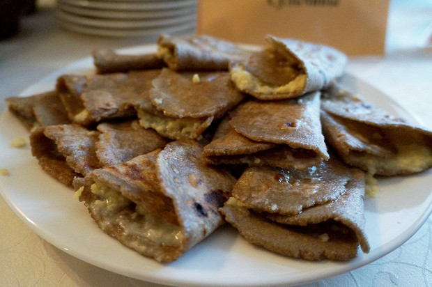 Ржаные карельские лепешки, бывшие очень популярными и в новгородских землях (территория Карелии входила в Новгородскую республику). Ими в том числе кормили ямщиков на новгородских станциях на пути из столицы в столицу. Вот рецепт лепешек Валентины Михайловны Тимофеевой из деревни Усть-Волма Крестецкого района, записанный на одном из фестивалей, устроенных «Красной избой». Из 1 кг ржаной муки, 1 стакана воды и 1,2 чайной ложки соли замесить тесто — чтобы оно не прилипало к рукам. Разделить его на кусочки размером с куриное яйцо, раскатать на тонкие лепешки. Обжарить их на сухой раскаленной сковородке с обеих сторон — очень быстро, чтобы не пересушить. Горячие лепешки с двух сторон обильно смазать сливочным маслом и сложить на плоскую тарелку. В то же время нужно сварить на молоке пшенную кашу средней густоты, смазать горячей кашей лепешки, завернуть их края с двух сторон к центру и сложить их вдоль еще раз. Едят сульчины горячими, макая в растопленное сливочное масло.