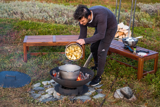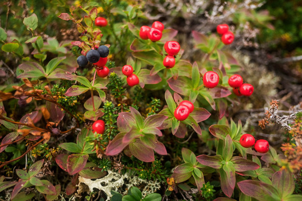 «Сделано природой» — кто-нибудь уже использует этот слоган? Кажется, так можно было бы назвать инсталляции из камней, накрытых ягодами и ягелем, как одеялом, из низкорослых карликовых берез, словно соревнующихся с грибами, кто ниже. Подосиновики, наоборот, тянутся ввысь, словно напрашиваясь к нам на сегодняшний ужин.