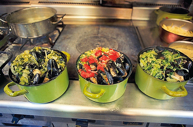 Возлюбленные братья и сестры мои, родня по трапезе! Любой дурак умеет готовить мидии: моешь раковины, режешь пару лимонов, чуть томишь это добро в собственном соку, пока не раскроются створки. Это так же просто, как готовить мидии в белом вине или в пиве, — и так же просто, как готовить фриты или сохранять в мясе сок. Это умеют все дураки и дуры мира. Но почему-то у дураков получается унылое дерьмо, а в Бельгии — бесконечное счастье. Почему? Не знаю. Но и в ар-нувошном Brasserie Horta, и в шалмане со стершимся от обилия туристов именем, и на скучнейших деловых авеню, и в кишочках улочек на холме над брюссельским Дворцом правосудия — всюду вы найдете три слагаемых местного кулинарного счастья: фриты, мидии, шмат мяса. (A propos: в переулках над упомянутым дворцом мы с женой однажды наткнулись на гастрономический ресторан Le Gourmandin. Там двое мужчин совмещали функции нежных друзей, поваров и официантов. Когда они принесли заказ — голубя с карамелизированным баклажаном на ковре из картофеля, — я обомлел: ковер был сложно соткан из картофельных нитей.)