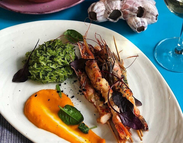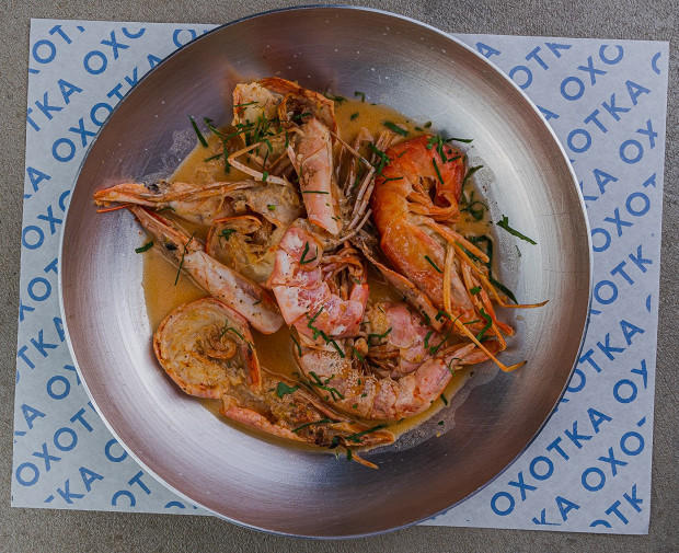 Имбирь, чеснок, петрушка, соевый соус и белое вино — та степень экзотики, к которой мы уже успели привыкнуть. Владимир Сидоров, шеф-повар ресторана «Черетто море», складывает из этих элементов авторский пазл, но главными все равно остаются аргентинские креветки размером с лангустина, и если уж они попались вам на пути, нужно уметь подать их во всей красе. Готовить этих креветочных гигантов — одно удовольствие, но важно не перемудрить и не перегрузить сладкое мясо лишним ворохом пряностей. Тут баланс соблюден, и в окружении солено-остро-пряного соуса с винными нотами и терпкой свежестью зелени креветки проявляют все лучшее в себе.